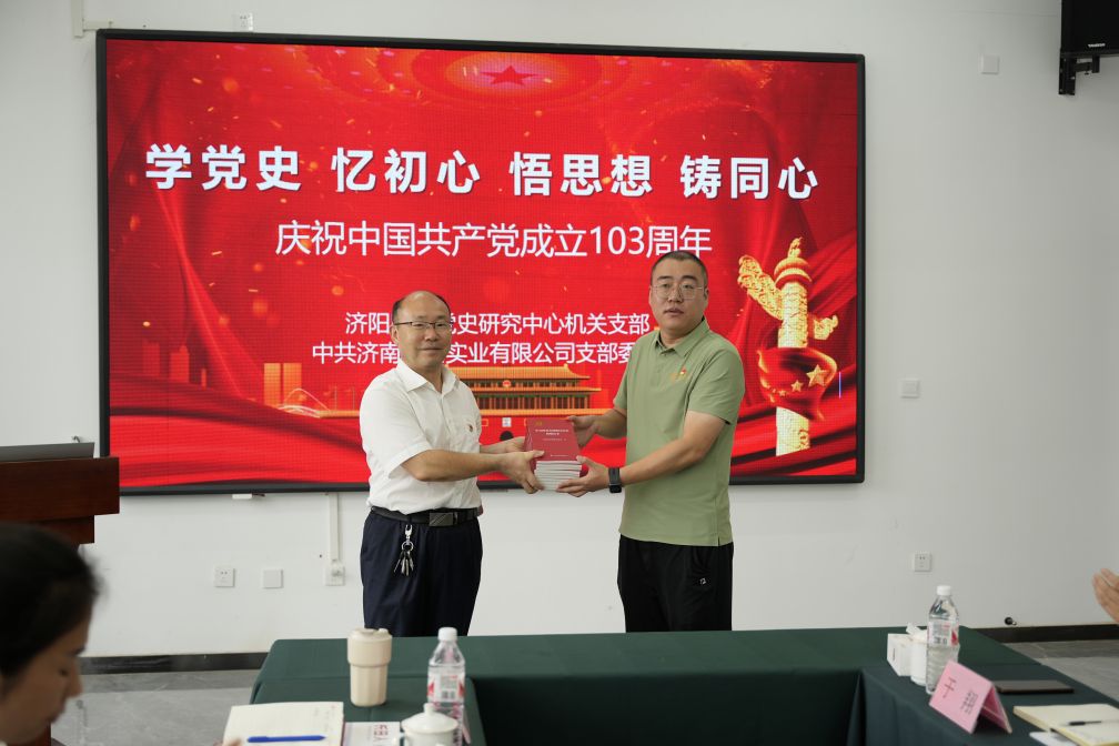 濟陽區(qū)委黨史研究中心主任王四彥代表濟陽區(qū)委黨史研究中心機關(guān)支部向中共濟南長田實業(yè)有限公司支部委員會贈送珍貴的黨史資料《中共濟南市濟陽區(qū)歷史簡明讀本》,為了解濟陽地方歷史文化、學(xué)習(xí)地方黨史等提供了可靠、可信的資料;為黨史文化和革命精神在企業(yè)普及傳承提供重要的精神食糧,希望這些書籍能夠發(fā)揮應(yīng)有作用,讓廣大干部群眾特別是年輕黨員干部接受紅色文化熏陶,讓紅色基因代代相傳。