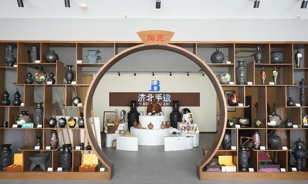 作為濟(jì)陽(yáng)區(qū)非遺文化的重要展示窗口,展廳始終以傳統(tǒng)技藝類(lèi)產(chǎn)品為核心支柱。升級(jí)后,黑陶的古樸厚重、老粗布的經(jīng)緯溫情、木作的匠心巧思、剪紙的靈動(dòng)鮮活、柳編的自然質(zhì)樸,以及黃河五彩陶、刻瓷、烙畫(huà)、彩塑等十余項(xiàng)代表性非遺手造產(chǎn)品依舊悉數(shù)亮相,每一件作品都承載著當(dāng)?shù)亟橙藬?shù)十年的技藝沉淀,全方位呈現(xiàn)了非遺文化的深厚底蘊(yùn)與獨(dú)特魅力,讓觀(guān)眾在參觀(guān)中直觀(guān)感受傳統(tǒng)手造的文化溫度。