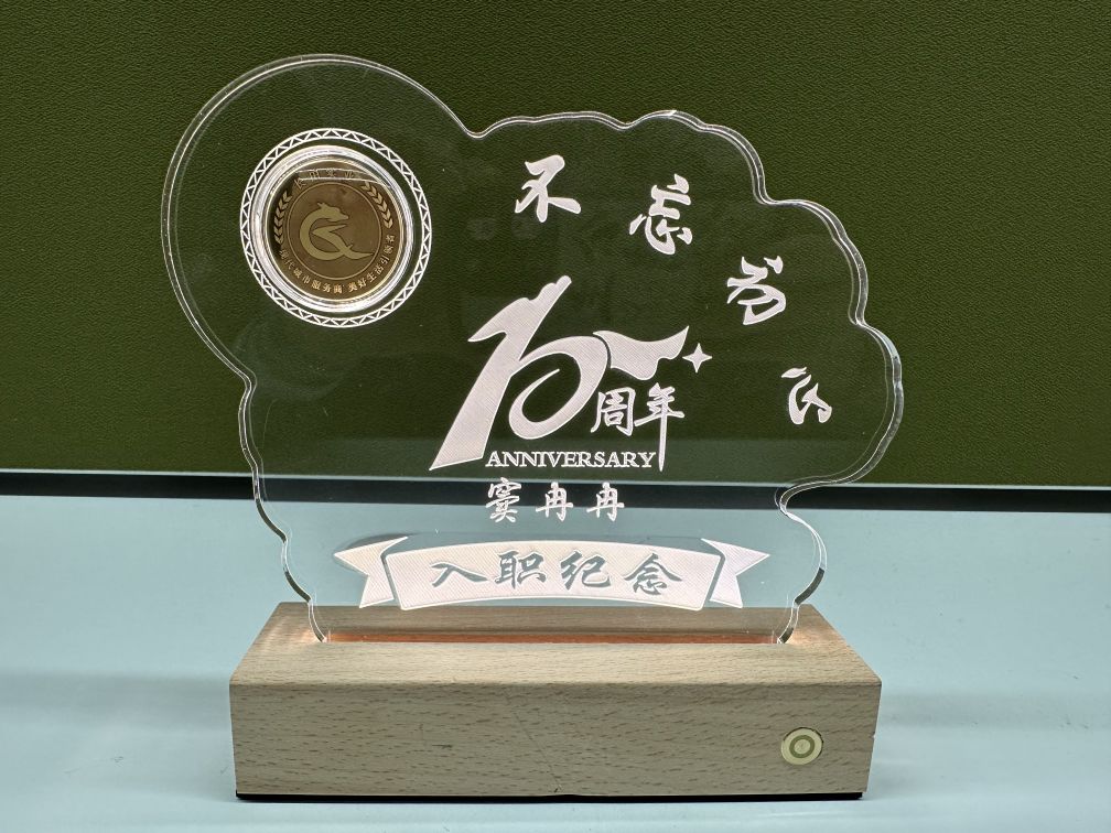 本次“十年耕拓獎”的紀(jì)念獎杯是公司精心選取的專屬定制獎杯,包含10周年標(biāo)志、受表彰個人姓名以及一枚純金打造的紀(jì)念獎?wù)拢自捳f“情比金堅”,這是來自公司最真摯的情誼,代表公司對他們十年付出的感謝與美好祝福!