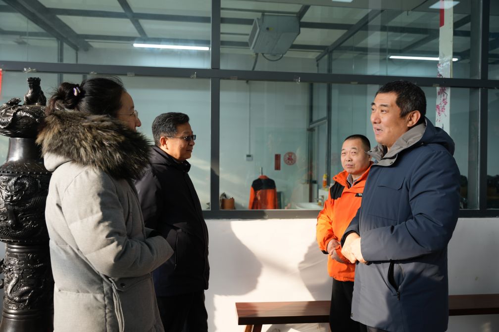劉主任一行實(shí)地參觀了易豐農(nóng)業(yè)在濟(jì)陽(yáng)街道董家村的產(chǎn)業(yè)布局和相關(guān)配套設(shè)施建設(shè),其中主要包括易豐居民宿、龍格黑陶藝術(shù)研究院以及濟(jì)水春秋博物館。聽(tīng)取了長(zhǎng)田實(shí)業(yè)黨支部書記、董事長(zhǎng)張勇關(guān)于易豐農(nóng)業(yè)在產(chǎn)業(yè)運(yùn)營(yíng)管理、賦能鄉(xiāng)村振興等方面的匯報(bào)。