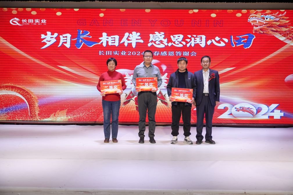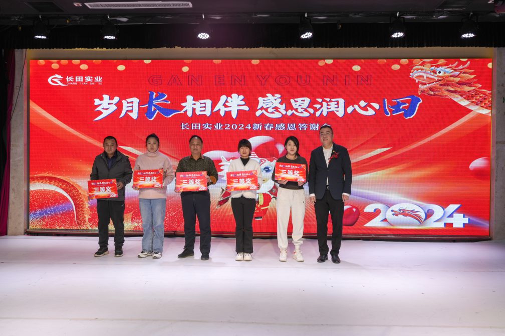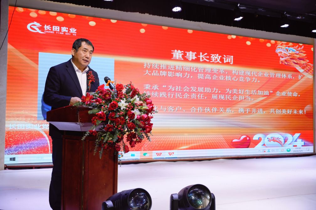 董事長張勇發(fā)表致辭,他首先向在座來賓表示了最誠摯的歡迎,并向所有關(guān)心、支持公司發(fā)展的各級領(lǐng)導(dǎo)和各界朋友,表示崇高的敬意和衷心的感謝。他講到,過去的一年,是長田實(shí)業(yè)充滿挑戰(zhàn)的一年。面對復(fù)雜多變的市場環(huán)境,公司全體員工團(tuán)結(jié)一心、逆勢而上,堅(jiān)持品牌建設(shè)戰(zhàn)略;深入實(shí)施“一個(gè)核心 兩個(gè)提升”項(xiàng)目,深化管理體系建設(shè),推動(dòng)公司各項(xiàng)業(yè)務(wù)穩(wěn)健發(fā)展,各業(yè)態(tài)戰(zhàn)績卓越,捷報(bào)頻傳。這些成績的背后,不僅飽含著所有長田人的辛勤付出和智慧,更離不開員工家屬們的理解和支持。他強(qiáng)調(diào),客戶,是企業(yè)發(fā)展的基石,是推動(dòng)我們不斷前行的核心力量?;厥走^去,我們一同經(jīng)歷了無數(shù)的挑戰(zhàn)與考驗(yàn),是你們始終如一的支持與信任,讓我們能夠堅(jiān)定信念、勇往直前;也是你們一如既往的陪伴與鼓勵(lì),讓我們在這個(gè)競爭激烈的市場中穩(wěn)步前行、發(fā)展壯大。他表示,接下來,長田實(shí)業(yè)將繼續(xù)堅(jiān)守“誠信為本、品質(zhì)經(jīng)營、責(zé)任發(fā)展”的經(jīng)營理念,將大家的需求和期望作為我們工作的出發(fā)點(diǎn)和落腳點(diǎn),持續(xù)精進(jìn)提升,用更加優(yōu)質(zhì)的產(chǎn)品和服務(wù)來回報(bào)大家的信任!同時(shí),我們也將繼續(xù)踐行民企責(zé)任,積極參與公益事業(yè),展現(xiàn)民企擔(dān)當(dāng),在“強(qiáng)新優(yōu)富美高”新時(shí)代社會(huì)主義現(xiàn)代化強(qiáng)省會(huì)建設(shè)的新征程中,譜寫新的篇章!