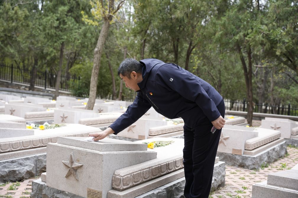 翠柏青松伴英烈,清明祭掃寄哀思。在革命烈士墓區(qū),全體人員懷著沉重的心情和崇高的敬意,俯身于烈士墓碑前,仔細地擦洗著每一座烈士的墓碑,并對墓區(qū)周邊環(huán)境進行衛(wèi)生清理,每一塊烈士墓碑都被擦拭得干干凈凈。