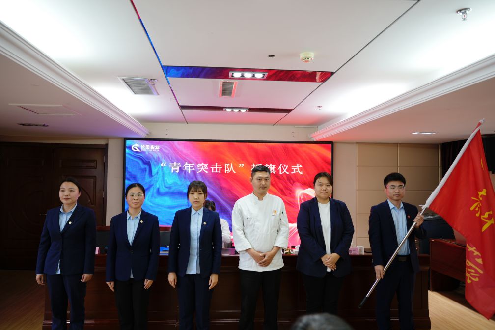 ▲長田實業(yè)團委書記張曉彤為青年突擊隊授旗