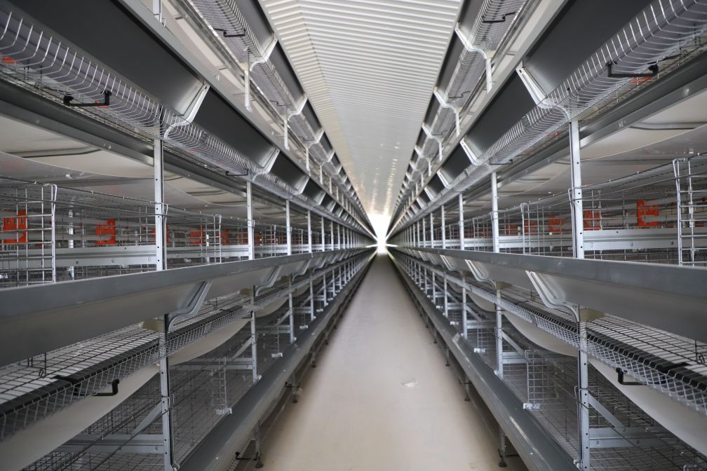 走進(jìn)雞舍內(nèi),環(huán)境明亮整潔,與傳統(tǒng)蛋雞養(yǎng)殖不同,養(yǎng)殖場采用全自動化養(yǎng)殖系統(tǒng)設(shè)備進(jìn)行飼養(yǎng)生產(chǎn),五列、雙面、四層籠架,不僅可以實(shí)現(xiàn)自動飲水、自動喂料、自動控溫、自動通風(fēng)、自動收集雞蛋、自動清糞,還引用了高科技的智能機(jī)器人管理,降低了勞務(wù)成本,極大地提高了生產(chǎn)效率。
