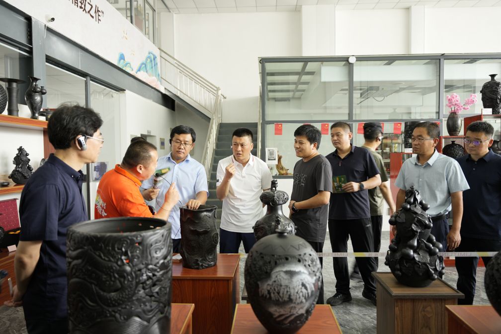 隨后,大家走進(jìn)了龍格黑陶藝術(shù)研究院,了解黑陶的歷史文化,近距離感受黑陶文化的魅力??疾靾F(tuán)一行被精美的黑陶作品深深吸引,對(duì)龍格黑陶的制作工藝和傳承價(jià)值表示贊賞。