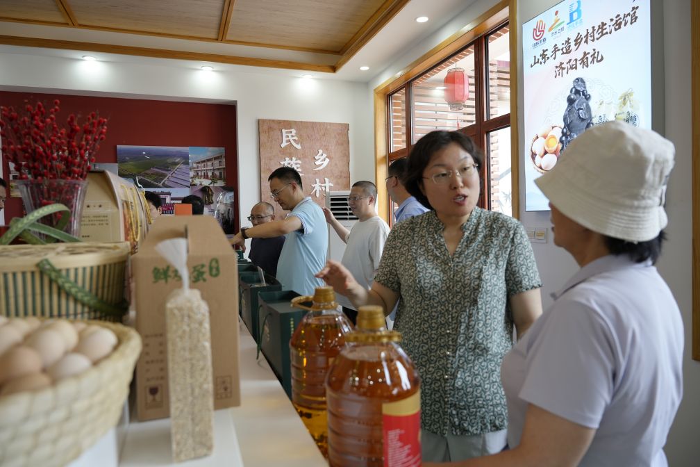 考察團(tuán)一行實(shí)地參觀了長(zhǎng)田實(shí)業(yè)在濟(jì)陽(yáng)街道董家村的產(chǎn)業(yè)布局和相關(guān)配套設(shè)施建設(shè)。首先參觀的是易豐居,室內(nèi)的農(nóng)產(chǎn)品展示臺(tái)上擺放著自種自養(yǎng)自產(chǎn)的各類生態(tài)產(chǎn)品,工作人員向大家詳細(xì)介紹了農(nóng)產(chǎn)品的來(lái)源及銷售情況。