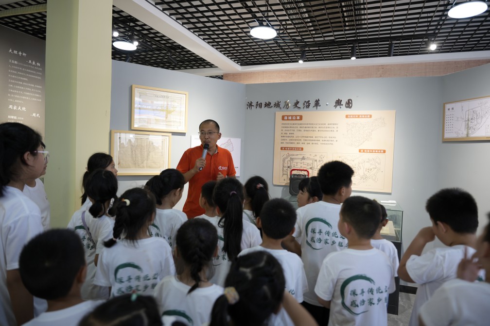 與文物對(duì)話,駐足歷史痕跡,感受文化的無(wú)窮魅力,增強(qiáng)孩子們的文化自信。孩子們?cè)谥v解員的引領(lǐng)下參觀基地內(nèi)濟(jì)水春秋博物館,館內(nèi)陳列著大量的珍貴古籍文獻(xiàn),涵蓋古代歷法、古代文學(xué)、古代農(nóng)業(yè)等各個(gè)門類,各類歷史文獻(xiàn)描繪了濟(jì)陽(yáng)厚重的歷史進(jìn)程,孩子們?cè)趨⒂^中學(xué)習(xí)家鄉(xiāng)的歷史文化,了解濟(jì)陽(yáng)故事,增強(qiáng)對(duì)家鄉(xiāng)的了解,提升文化自信。