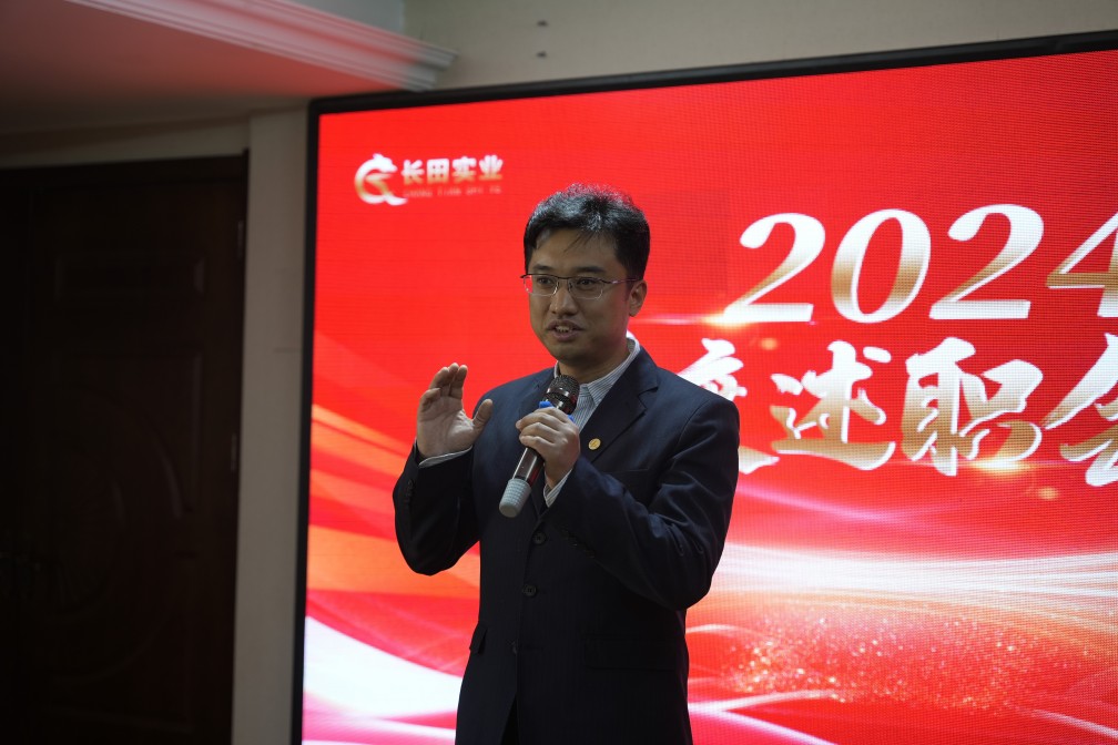 為強(qiáng)化管理人員履職擔(dān)當(dāng)意識,充分發(fā)揮述職評價監(jiān)督作用,1月10日,長田實業(yè)召開2024年度述職大會,共同回顧2024年的奮斗征程,為新一年的工作奠定堅實根基。長田實業(yè)黨支部書記、董事長張勇,常務(wù)副總朱寶剛,副總經(jīng)理成峻志、侯淑蘭,中層管理者及儲備干部共計50余人參加。會議由人力資源部經(jīng)理盧鋒主持。