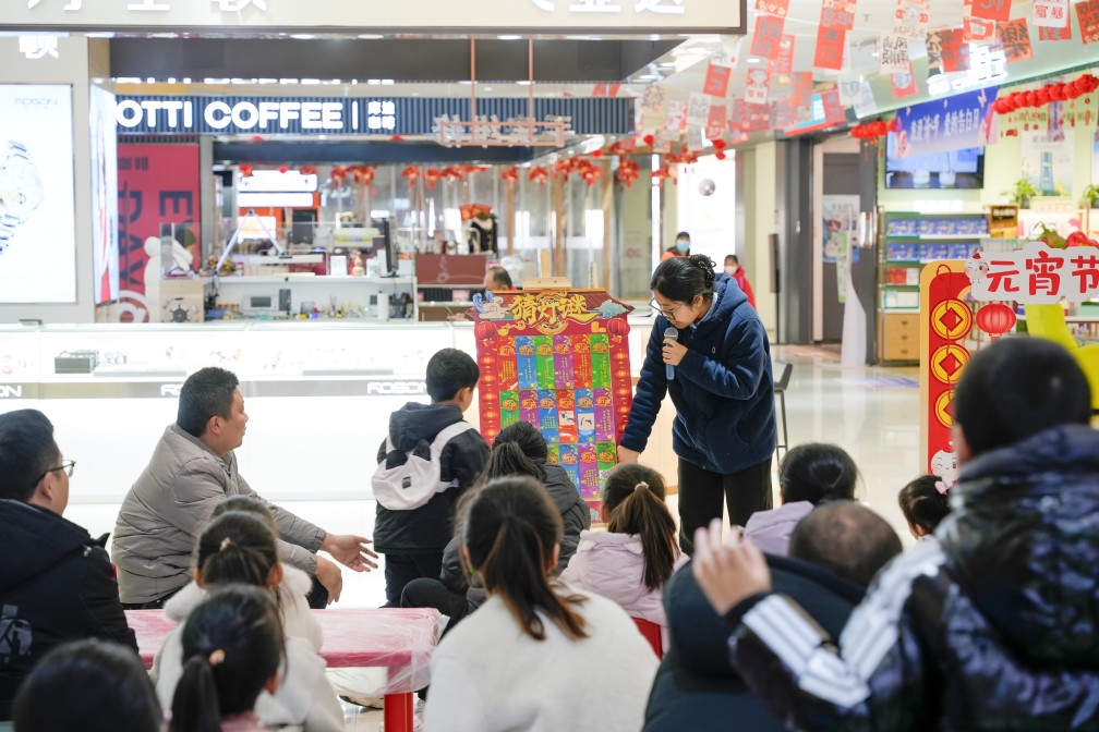 華百?gòu)V場(chǎng)內(nèi),工作人員們精心準(zhǔn)備了各類(lèi)燈謎,內(nèi)容涵蓋了詩(shī)詞歌賦、歷史典故、生活常識(shí)各個(gè)領(lǐng)域,既有趣味性又具知識(shí)性。每一次謎底的揭曉,都是智慧碰撞出的火花,讓大家在歡樂(lè)中感受傳統(tǒng)文化的博大精深。每當(dāng)工作人員念完“燈謎”后,孩子們便紛紛舉手回答,現(xiàn)場(chǎng)氛圍歡快熱烈,工作人員為猜對(duì)的家庭發(fā)放精美禮品,更加激發(fā)了大家的參與熱情。通過(guò)沉浸式文化體驗(yàn),在傳統(tǒng)民俗中傳遞溫暖親情,增強(qiáng)民族文化自信。