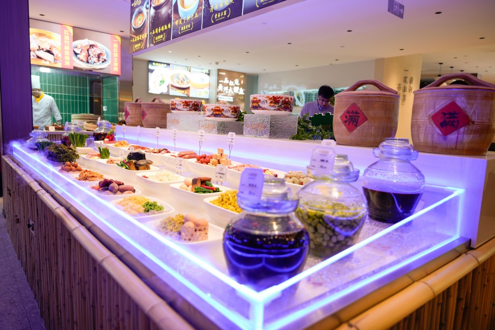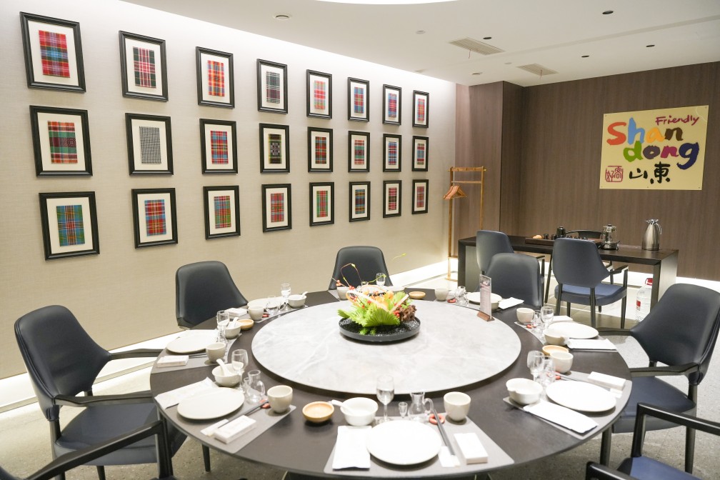 獨(dú)具匠心之處在于,一品黃河20個(gè)包間以黃河所流經(jīng)的九個(gè)省份和進(jìn)入山東省后所流經(jīng)的九個(gè)市的名稱(chēng)命名,房間內(nèi)軟裝如掛畫(huà)等體現(xiàn)沿黃省份、城市的文化特征,并通過(guò)桌卡形式全面呈現(xiàn)文化內(nèi)涵,將黃河文化具象為沉浸式餐飲體驗(yàn)。比如山東廳懸掛的是山東具有代表性的非遺文化代表作--魯錦,魯錦的每一梭都是對(duì)自然的敬畏,每一紋都是對(duì)生活的期許;黃河源頭青海廳懸掛的是青海省具有代表性的非遺文化代表作熱貢唐卡;四川廳懸掛的是四川具有代表性的非遺文化代表作蜀繡做成的熊貓壁畫(huà);有“天下黃河富寧夏”之說(shuō)的寧夏廳,懸掛的是寧夏最具代表性的非遺文化產(chǎn)品回民剪紙等等。讓每一餐都成為一場(chǎng)文化之旅。