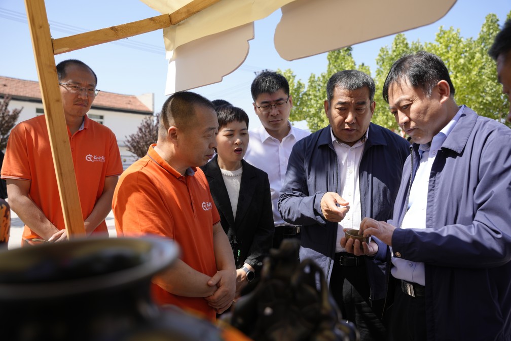非遺展臺集中呈現(xiàn)黑陶制作、彩塑、烙畫、木版年畫等文化遺產(chǎn),領導們通過非遺傳承人的講述,感受技藝背后的歷史積淀,鼓勵非遺項目走出深閨、走向市場,融入現(xiàn)代生活,實現(xiàn)“雙創(chuàng)”發(fā)展。濟北手造展臺則匯聚黃河沿岸的民間手造精品,既有老粗布、鉤繡等傳統(tǒng)工藝,也有融入現(xiàn)代設計的黑陶文創(chuàng)產(chǎn)品,凸顯匠心與創(chuàng)新的結合。此外,還有以長田樂享超鮮蛋、烏棗、小磨香油、永慶昌熟食、肖家酥火燒等在地食材為亮點,展示了濟陽“北緯37度黃金農(nóng)業(yè)帶”的優(yōu)質(zhì)農(nóng)產(chǎn)品,成為鄉(xiāng)村振興的特色名片?;顒油ㄟ^場景化體驗與資源整合,進一步塑造了濟陽文旅品牌,推動區(qū)域高質(zhì)量發(fā)展。