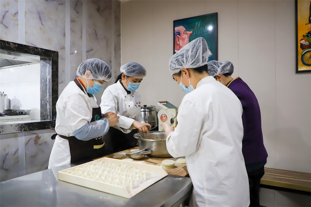 幸福的餃子 吉祥的餡兒。長田實業(yè)旗下“田小廚”的家人們放棄休息時間,分配好任務各司其職,和面、切菜、調(diào)餡,包制了2000多個大餡水餃,這圓潤飽滿的餃子寓意著美好與幸福,伴著長田人滿滿的情意,讓老人們暖胃更暖心。